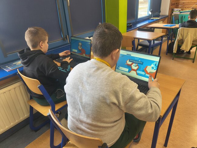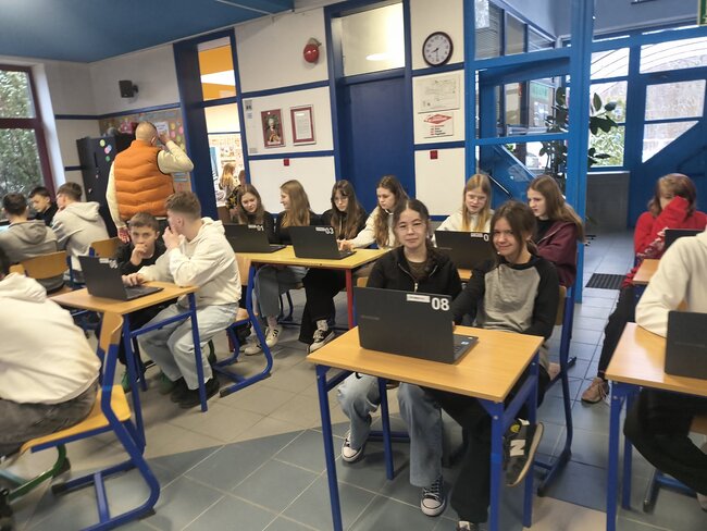 Najpierw temat zgłębiały klasy 7–8, a później klasy 4–6. Ilość nowych informacji była naprawdę duża, dlatego na zakończenie przygotowano grę, dzięki której uczniowie mogli sprawdzić, ile zapamiętali i jak radzą sobie z rozpoznawaniem bezpiecznych i niebezpiecznych sytuacji w internecie.