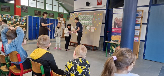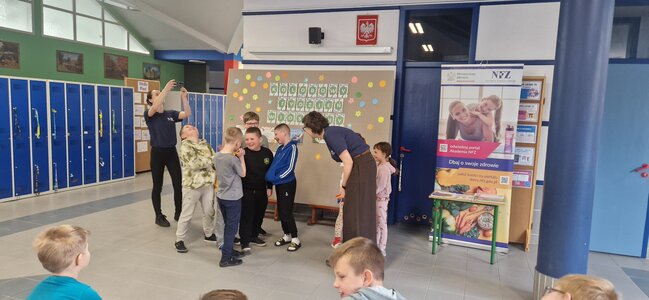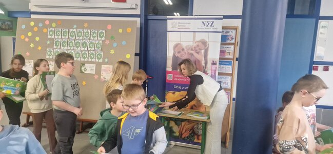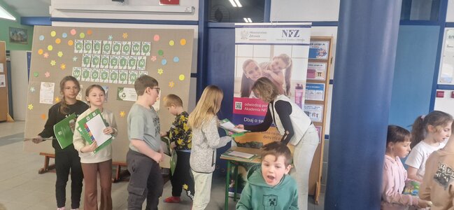 Tego samego dnia odbyło się również spotkanie z przedstawicielkami Narodowego Funduszu Zdrowia (NFZ), które rozmawiały z uczniami o dbaniu o zdrowie. Podczas prelekcji poruszono tematy związane z prawidłową higieną, w tym dbaniem o zęby, znaczeniem zdrowej i zbilansowanej diety oraz codzienną aktywnością fizyczną. Uczniowie mieli okazję dowiedzieć się, jak ważne są zdrowe nawyki i regularna troska o własne zdrowie.
