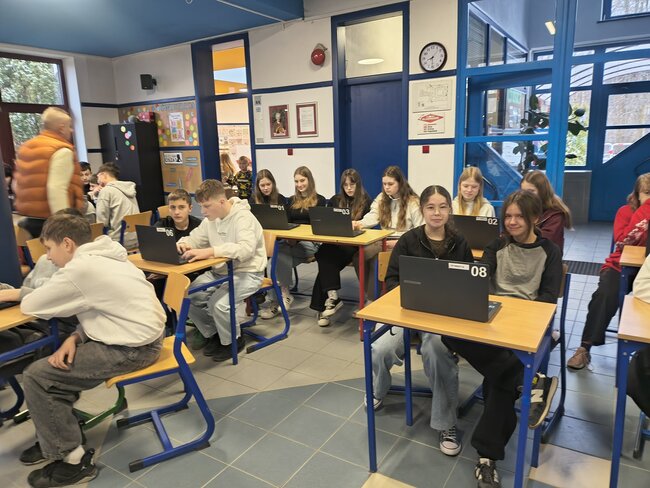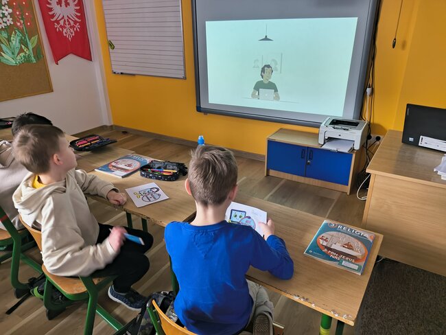 Najpierw temat zgłębiały klasy 7–8, a później klasy 4–6. Ilość nowych informacji była naprawdę duża, dlatego na zakończenie przygotowano grę, dzięki której uczniowie mogli sprawdzić, ile zapamiętali i jak radzą sobie z rozpoznawaniem bezpiecznych i niebezpiecznych sytuacji w internecie.