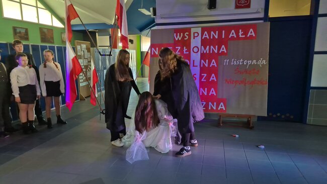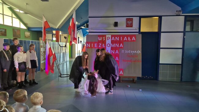 11 listopada to radosne święto, którym wyrażamy nasze zadowolenie z odzyskania niepodległości przez Polskę oraz dumę z bycia Polakami. Szkolne obchody kolejnej rocznicy uwolnienia się spod opresji zaborców przypadły na 6 listopada. Świętowanie rozpoczęliśmy uroczystą akademią, po niej odbył się, będący coroczną tradycją, Bieg Niepodległości pod "kapliczkę" - Pomnik Ofiar I i II wojny światowej. Punktualnie o 11.11 odśpiewaliśmy "Mazurka Dąbrowskiego" pod pomnikiem upamiętniającym Powstańców Wielkopolskich. Dzień zakończył mecz nauczyciele-uczniowie w dwa ognie.