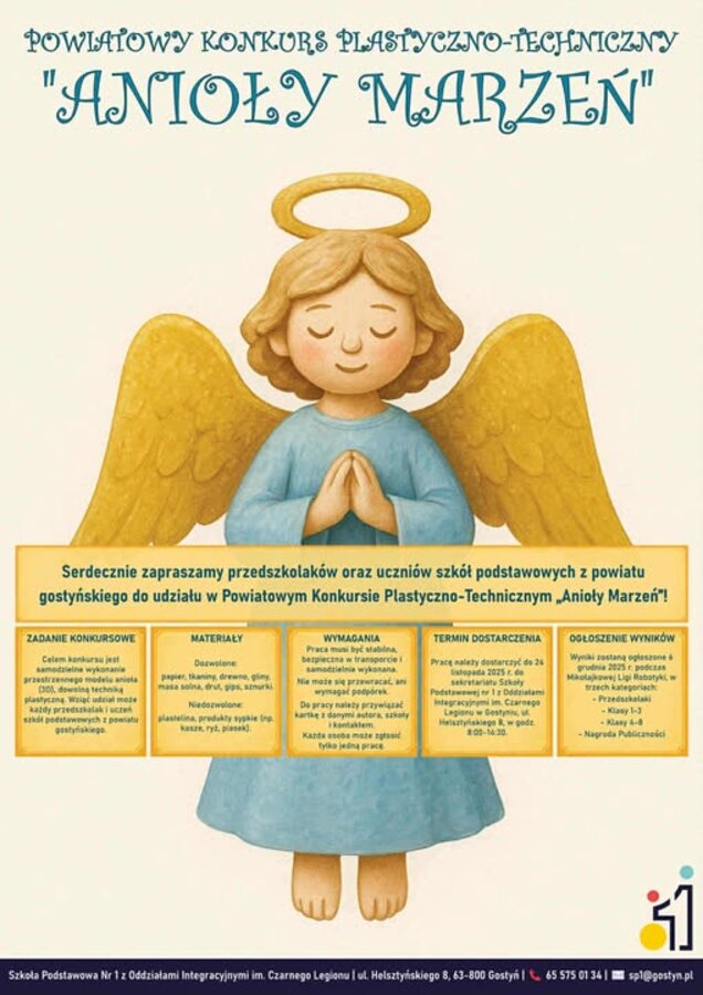 Powiatowy Konkurs pt. „Anioły Marzeń” zorganizowany przez Szkołę Podstawową nr 1 z Oddziałami Integracyjnymi im. Czarnego Legionu w Gostyniu cieszył się dużym zainteresowaniem i zgromadził wielu utalentowanych młodych artystów z całego powiatu.