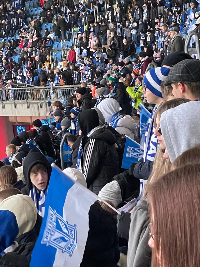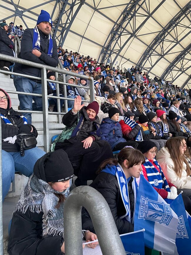Dnia 23 listopada uczniowie naszej szkoły udali się do Poznaniana mecz piłki nożnej pomiędzy Lechem Poznań a Radomiakiem Radom.Nie jest tajemnicą, że drużyna Lecha to największy i najbardziej utytułowany klub nie tylko w Wielkopolsce ale i w całym naszym kraju.\tW niedzielę o 12.00 wyruszyliśmy do stolicy Wielkopolski na mecz najwyższej klasy rozgrywkowej w Polsce jaką jest Ekstraklasa.Na wyprawę wybrało się 33 uczniów naszej szkoły. Ze względu na zimowe warunki atmosferyczne, ciepło ubrani młodzi kibice wraz z opiekunami zameldowali się na stadionie miejskim w Poznaniu.\tDla niektórych uczniów była to pierwsza wizyta na meczu. Wrażenie było ogromne, tym bardziej, że na stadionie podczas meczu było około 30 tysięcy widzów.\tUczestnicy mieli okazję zobaczyć fenomenalną atmosferę jaka panuje przy Bułgarskiej. Piłkarze nie zawiedli i przy dopingu tysięcy fanów pokonali piłkarzy z Radomia 4:1.\tPo widowisku sportowym i wspólnym kibicowaniu udaliśmy się do restauracji Mc Donald's na zimową herbatkę i posiłek.\tOkoło 20.30 wróciliśmy do domu, troszkę zmarznięci ale bardzo zadowoleni. Marcin Kaczmarek