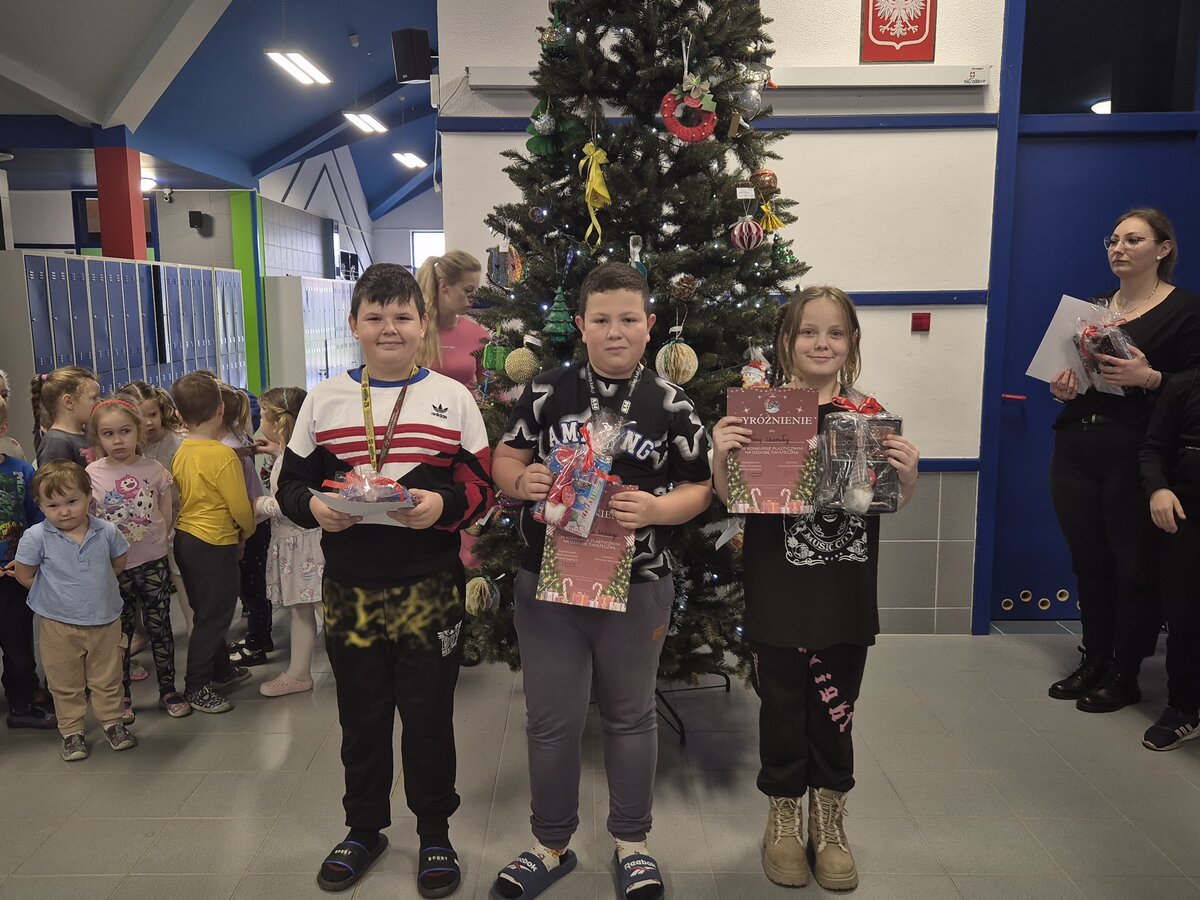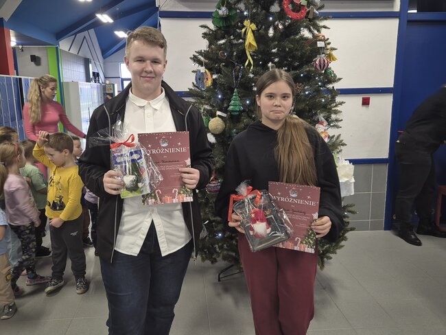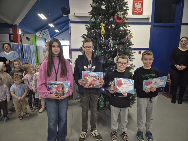 Wspólnie udekorowali choinkę Konkurs na najpiękniejszą ozdobę świąteczną został rozstrzygnięty. Wszystkie prace zdobią nasze szkolne drzewko i można je podziwiać w holu szkoły. Małym i większym twórcom ozdób gratulujemy pomysłowości!